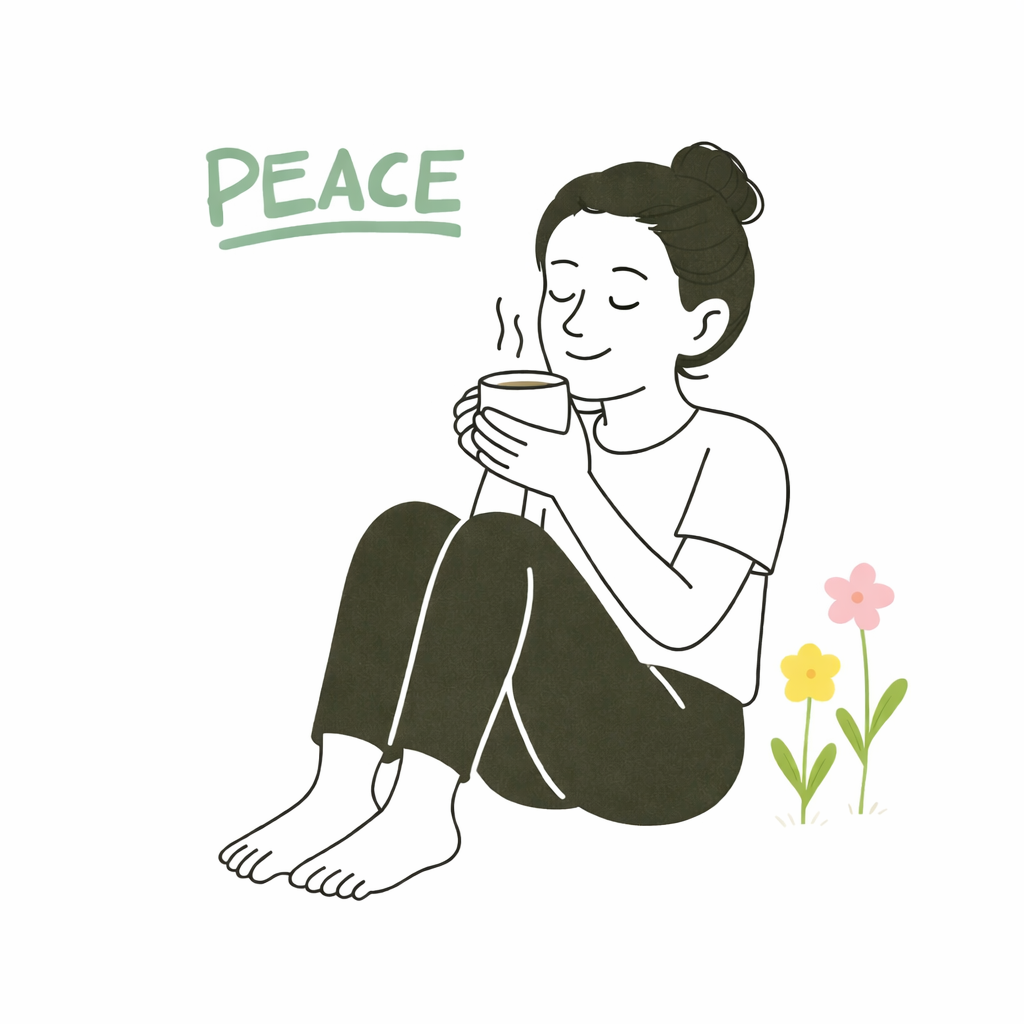 「自分にくつろぐ」の私のイメージとしては、「ホッと一息」「安堵感」「自分に正直」「素の自分を受け入れている」「心身ともに穏やか」「自己成長を楽しめている」