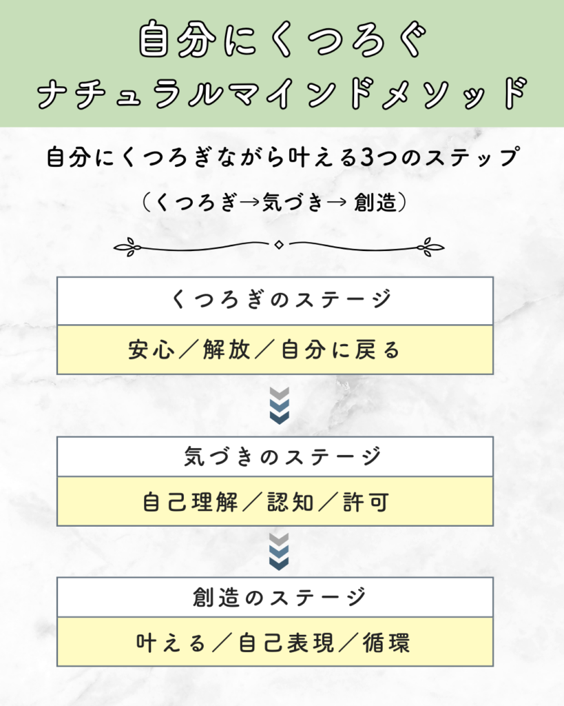 でも、興味を広げながら体験してきた私だからこそ、「自分にくつろげる」ようになる最短ルートへの案内ができるので、全ての学びが大切なプロセスだったと思えたのです。
